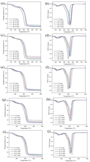 英文名称 : TG-DTG curves of CNP/EPF composite films at different heating rates
