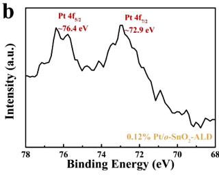 0.12% Pt/o-SnO2-ALD powder samples were analyzed and tested after drying. The X-ray excitation source is a monochromatic Al Kα (hν = 1486.6eV) ray. The resulting spectral signal is calibrated at C1s 284.6eV.