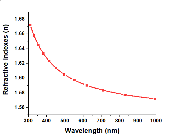 英文名称 : Refractive index of the cured AB film and ZrO2/AB film with 10wt% ZPP
