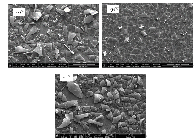 说明 : 试验钢表面腐蚀产物(a)轧态(b)淬火态(c)正火态