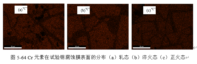 英文说明 : The distribution of Cr element on the corrosion film surface of the test steel (a) rolled state (b) quenched state (c) normalized state