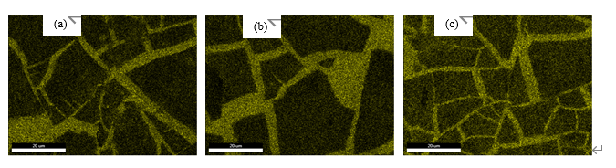 英文说明 : The distribution of Fe element on the corrosion film surface of the test steel (a) rolled state (b) quenched state (c) normalized state
