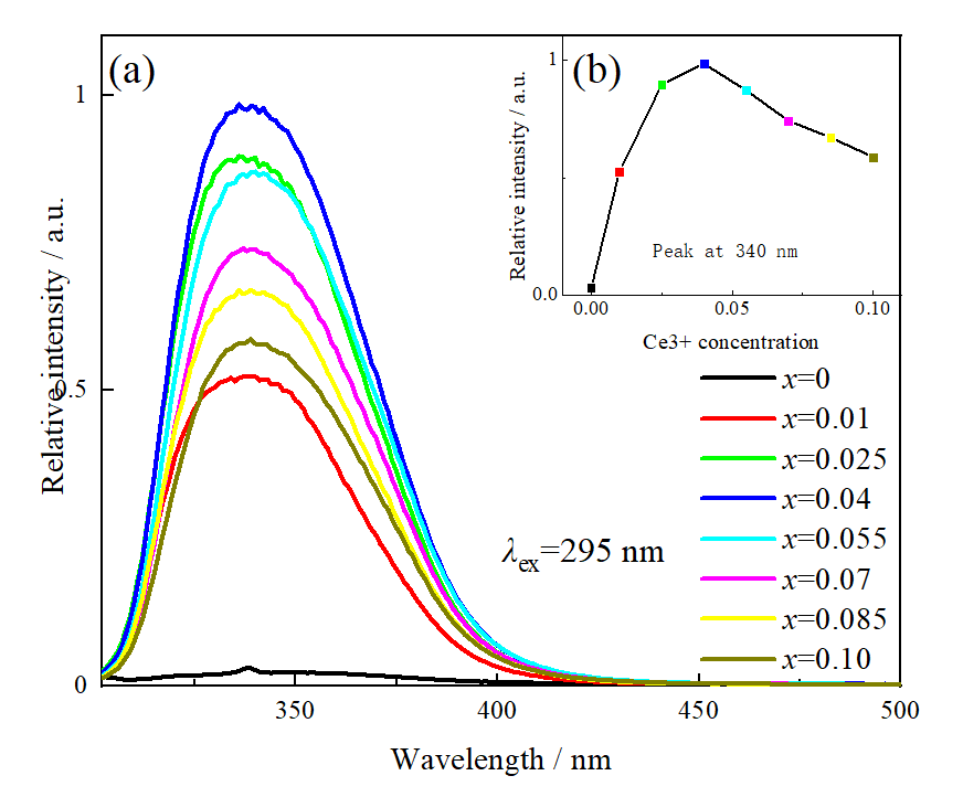 说明 : 根据不同Ce含量下Sr卤磷酸盐的发射光谱研究其发光性能