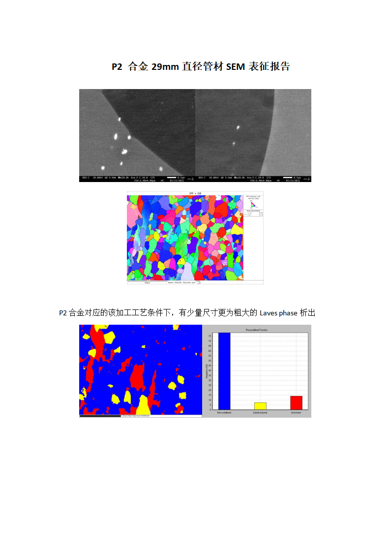英文名称 : Report on SEM characterization of P2 alloy 29mm diameter tube