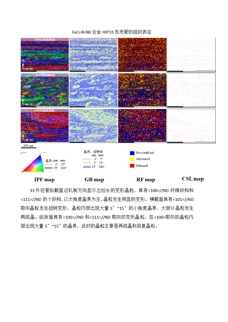 说明 : FeCrAl-N6合金HIP33包壳管的微观组织表征
