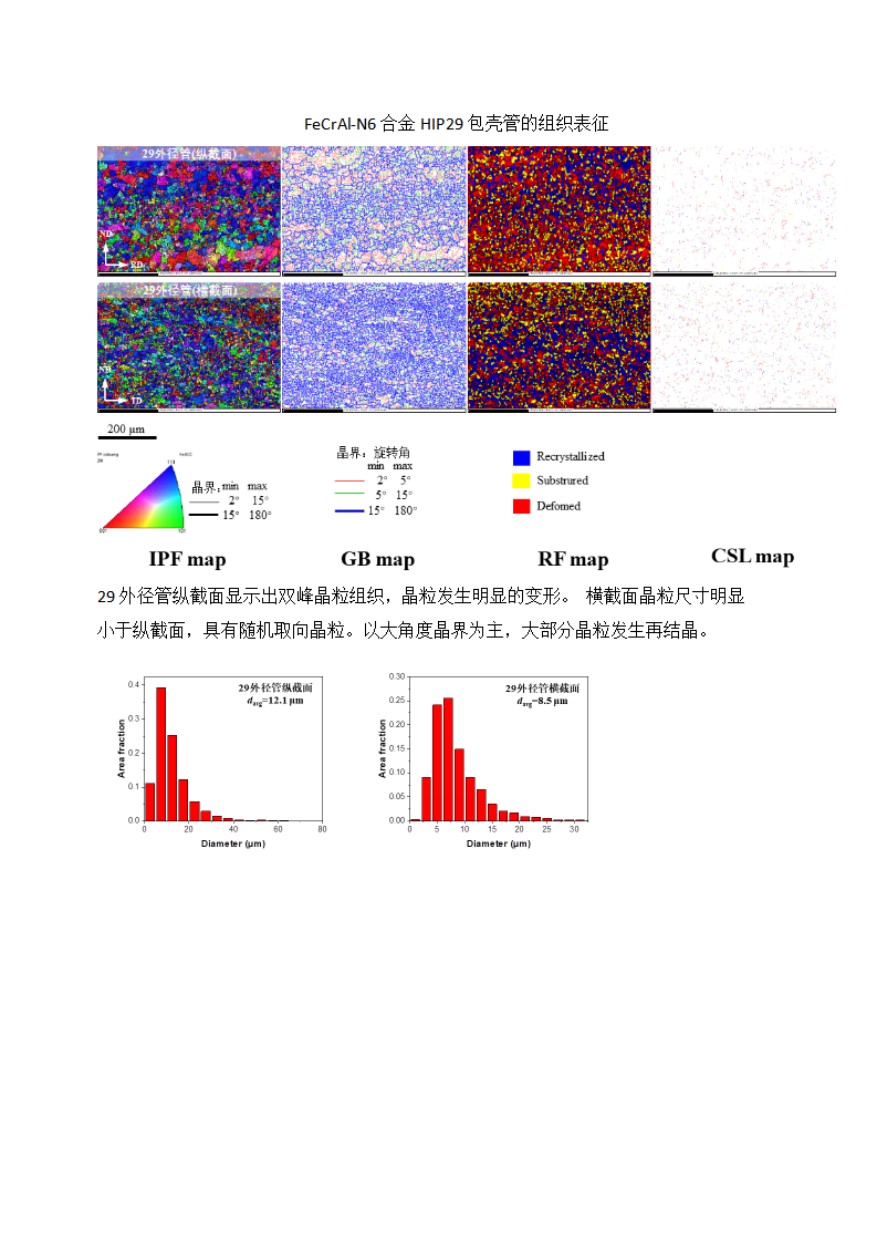 说明 : FeCrAl-N6合金HIP29包壳管的微观组织表征
