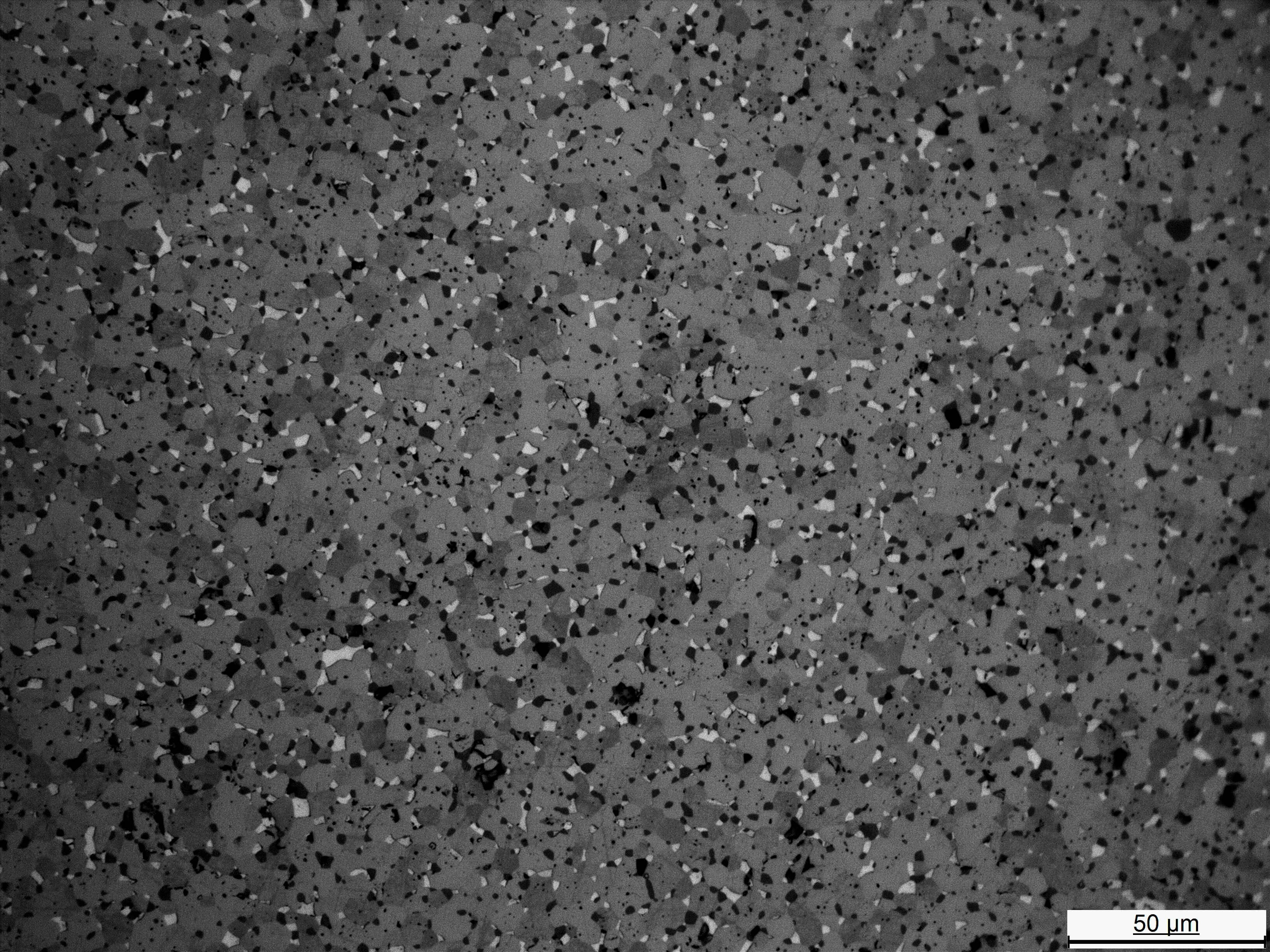 The macro-morphology of UN/U3Si2(10wt%) composite pellets was characterized by metallographic microscope. The results show that three typical microstructures are observed in the UN/U3Si2(10wt%) composite pellets. The microstructures shown in the region 1 are the main components of the pellets. As shown in the region 2, the contrast of these microstructures is dark, and these microstructures disperse in the matrix. Moreover, the contrast of the microstructures shown in the region 3 is bright, and these microstructures disperse in the matrix.