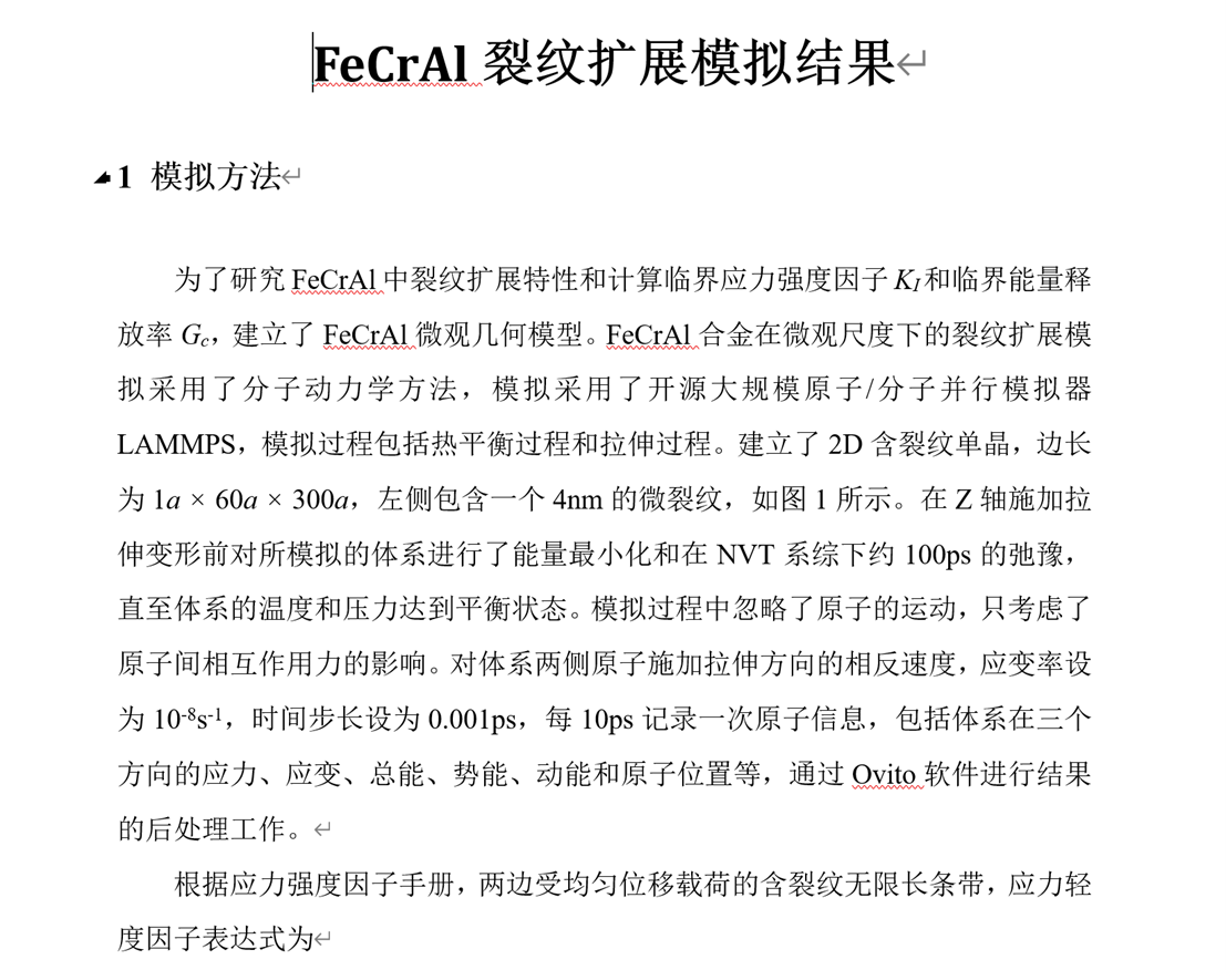说明 : 通过分子动力学模拟,研究了FeCrAl裂纹扩展速度随裂纹长度的变化。